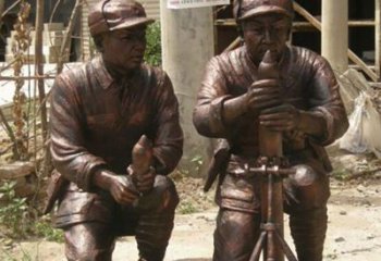 八路軍紀念銅雕全方位發射炮彈雕塑