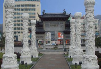 景區寺廟古建筑門前擺放漢白玉石雕龍石柱