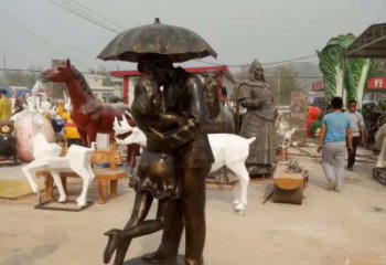 鑫特雕塑 情侶之間的浪漫——商場(chǎng)情侶人物銅雕