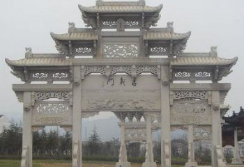 中式古典門樓牌坊手工大理石雕刻